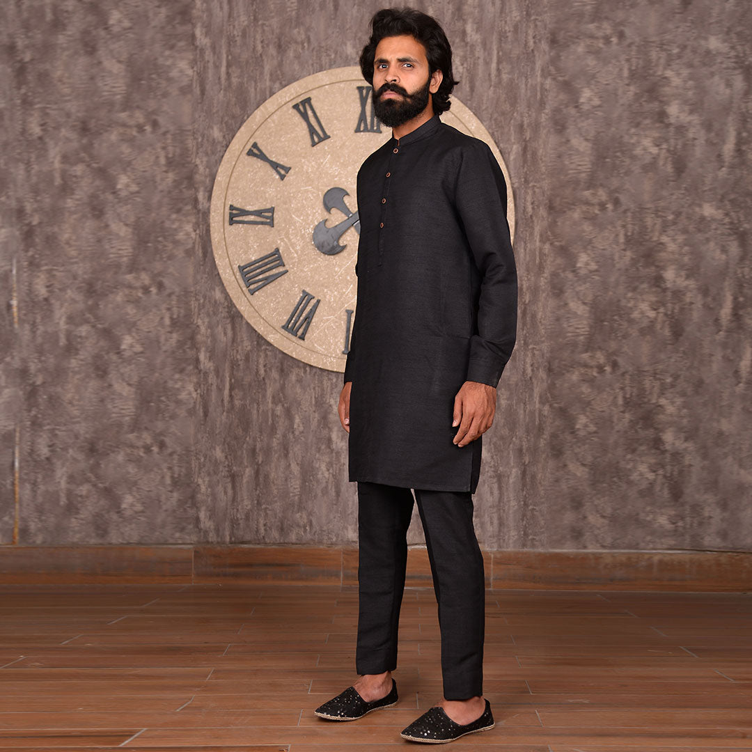 bring perfect look with this bar silk attrective fabric.this kurta trouser will be an element for any event