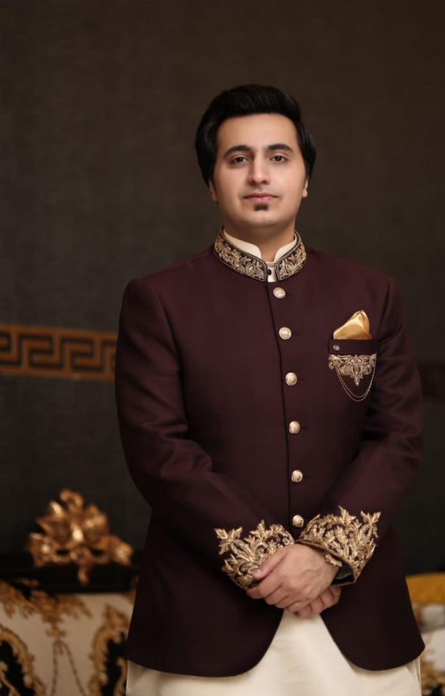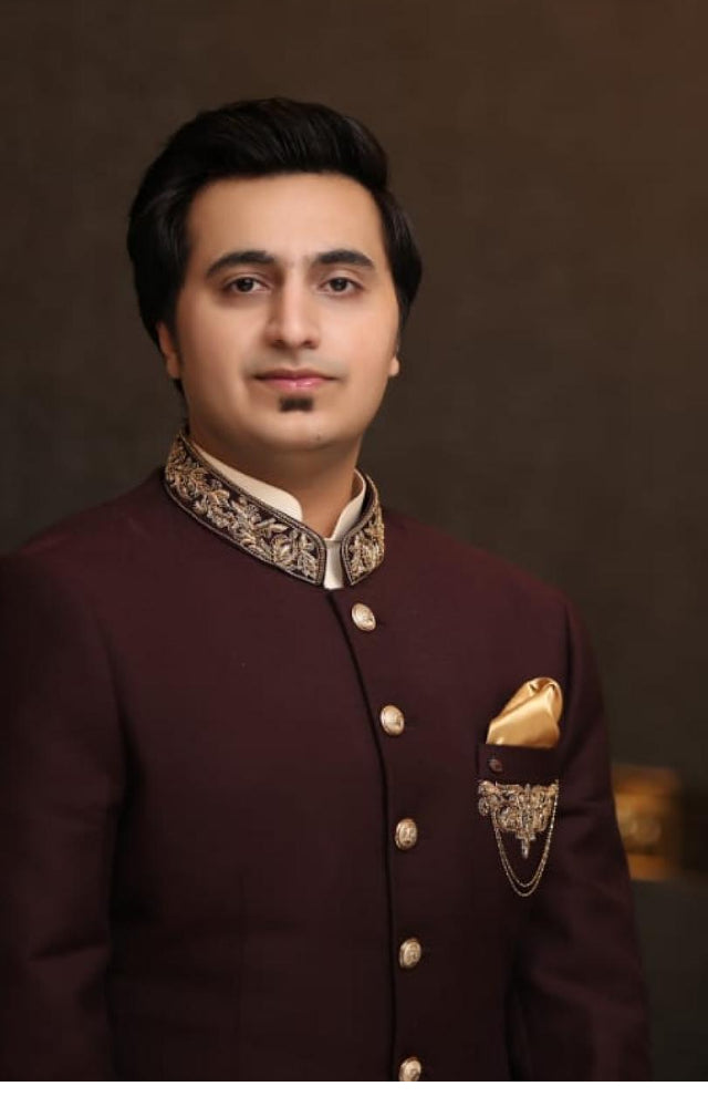 "FAVAS" prince coat embellished with resham, a golden sitara, and an antique moti, you may exude a sense of aristocratic Sultan. A kurta trouser in a soft shade completes the look and conveys the purity of a work of art.