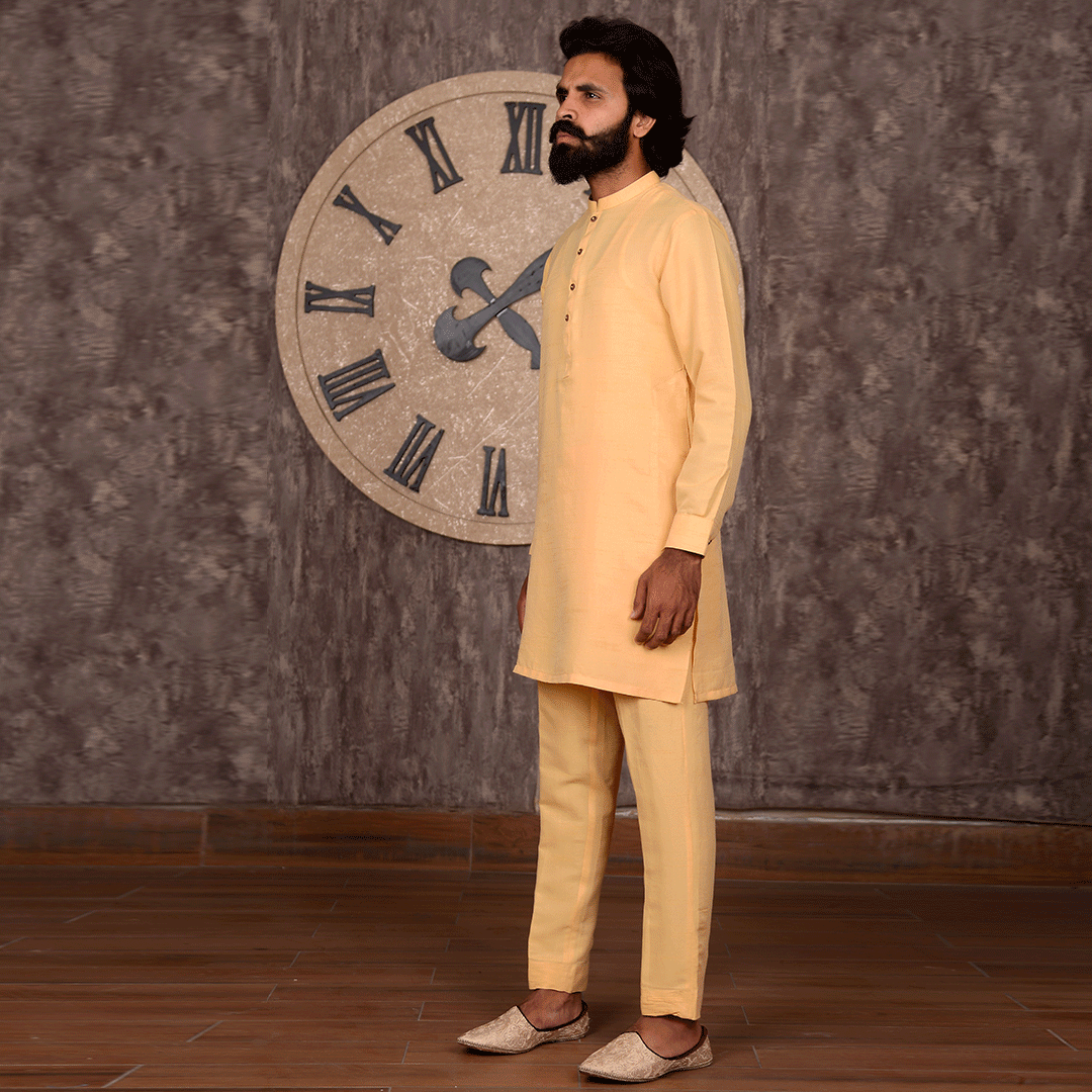 Bring perfect look with this bar silk attrective fabric.this kurta trouser will be an element for any event