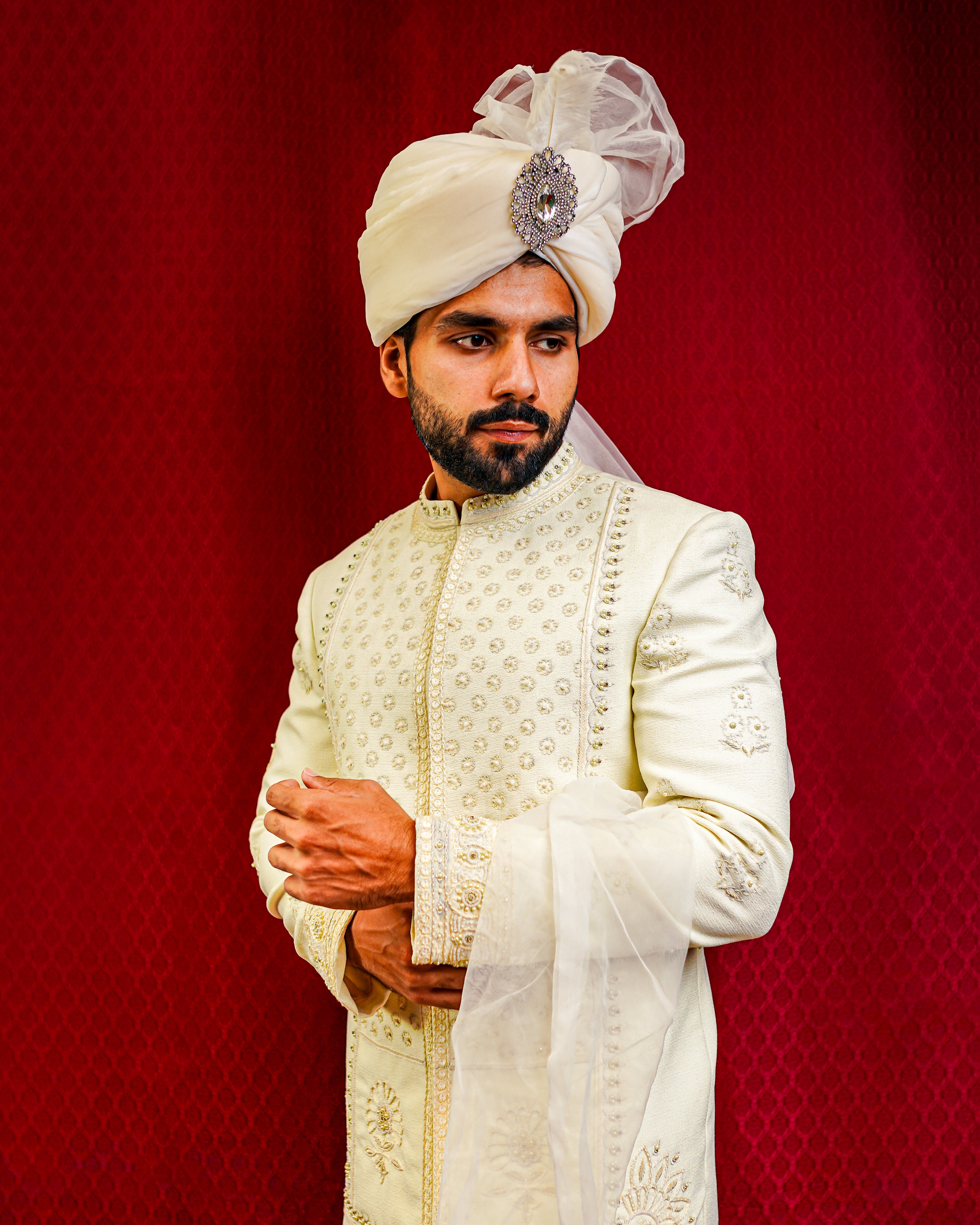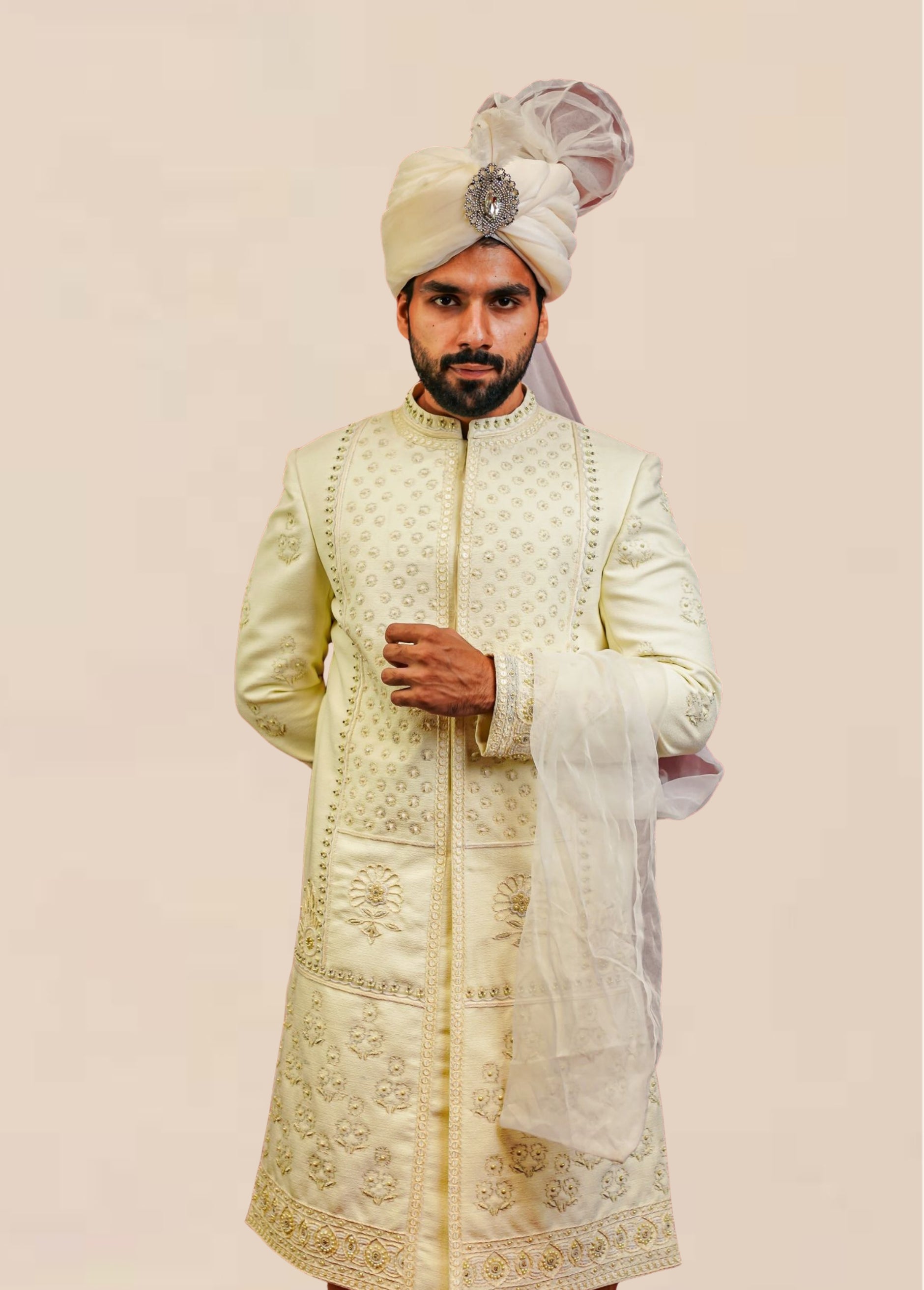 The Men Zariak Sherwani is the perfect blend of traditional and modern style. Made from high-quality materials, it offers a comfortable fit and exquisite craftsmanship. With its timeless design, it is the perfect choice for any formal occasion. Elevate your fashion game with this elegant and sophisticated piece.