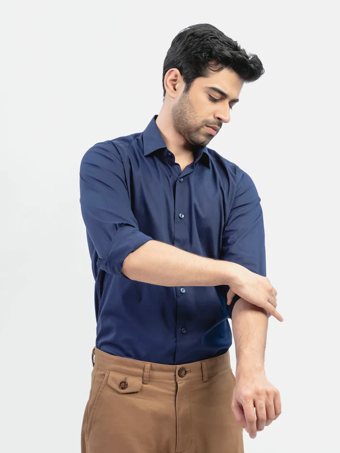 This men's Navy Blue formal shirt is a must-have for any professional wardrobe. Its tailored fit and Navy Blue color exude sophistication and elegance. Made from high-quality materials, it offers both comfort and style. Perfect for any formal occasion, this shirt is a staple piece that will elevate your look.