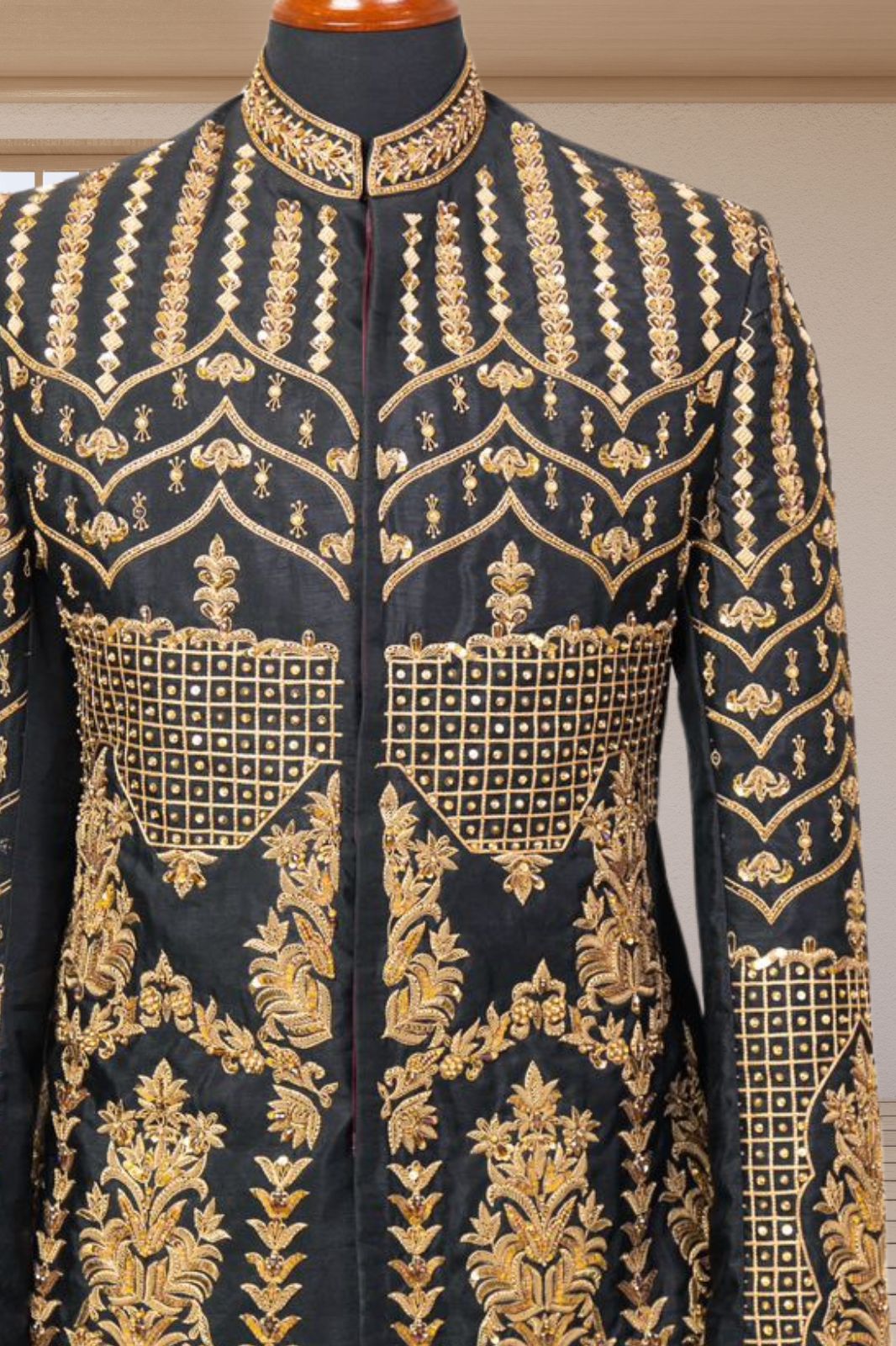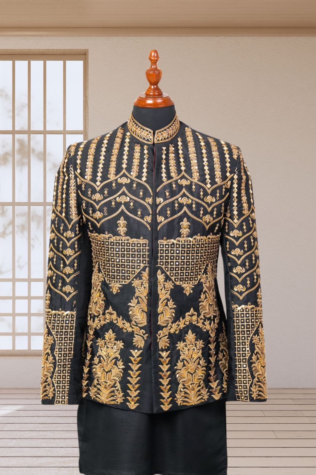The Men Majestic SHAH BAHRAAM is the perfect blend of traditional and modern style. Made from high-quality materials, it offers a comfortable fit and exquisite craftsmanship. With its timeless design, it is the perfect choice for any formal occasion. Elevate your fashion game with this elegant and sophisticated piece.