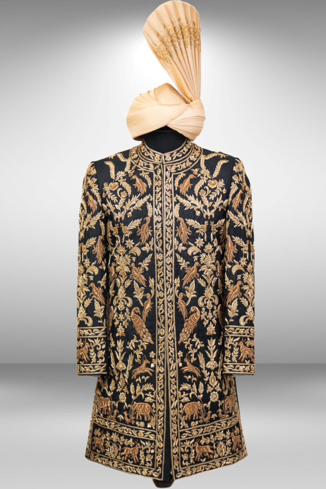 The Men ZARAAR Sherwani is the perfect blend of traditional and modern style. Made from high-quality materials, it offers a comfortable fit and exquisite craftsmanship. With its timeless design, it is the perfect choice for any formal occasion. Elevate your fashion game with this elegant and sophisticated piece.
