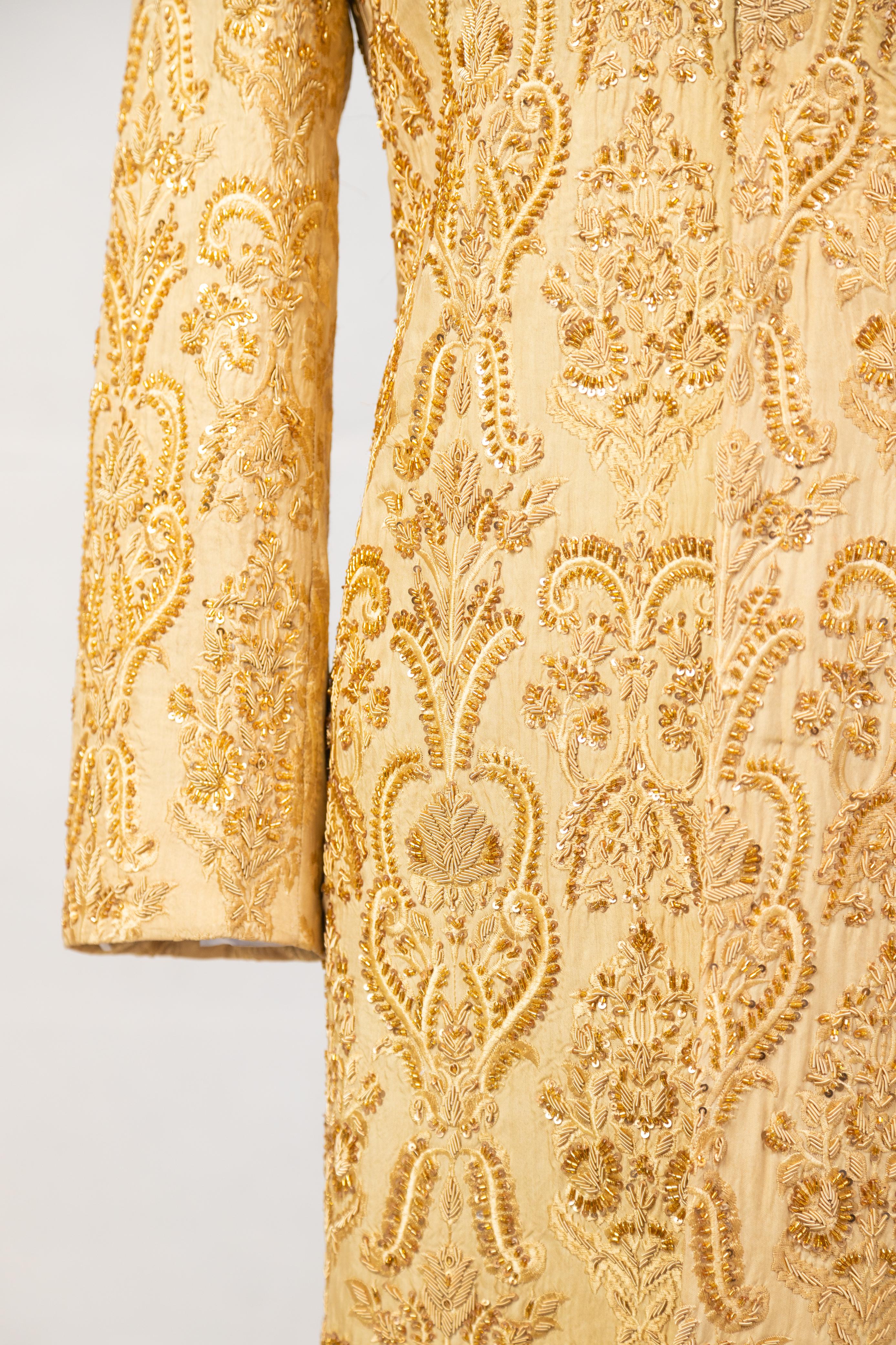 The Men AREEB Sherwani is the perfect blend of traditional and modern style. Made from high-quality materials, it offers a comfortable fit and exquisite craftsmanship. With its timeless design, it is the perfect choice for any formal occasion. Elevate your fashion game with this elegant and sophisticated piece.