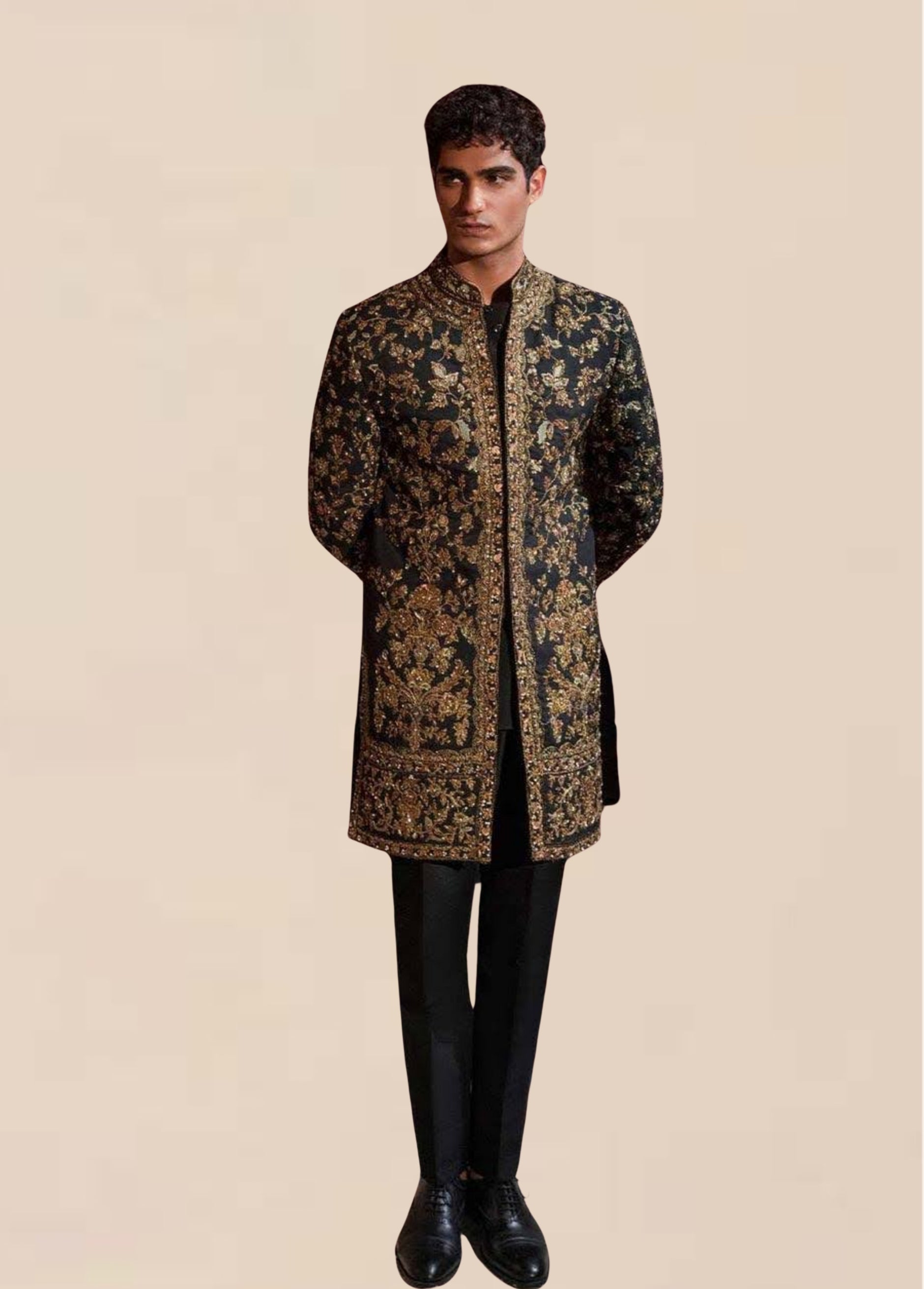 The Men ZARAAR Sherwani is the perfect blend of traditional and modern style. Made from high-quality materials, it offers a comfortable fit and exquisite craftsmanship. With its timeless design, it is the perfect choice for any formal occasion. Elevate your fashion game with this elegant and sophisticated piece.
